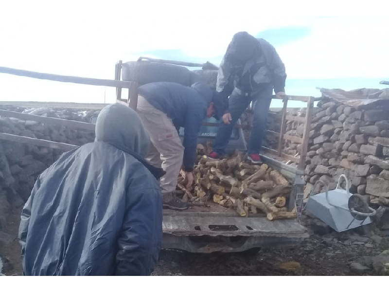 En Yaminue se entregaron módulos alimentarios y frazadas para los vecinos, en Comallo se distribuyó un camión de leña y 100 módulos alimentarios, en Maquinchao y Mencue se distribuyó un camión de leña en cada una de las localidades.